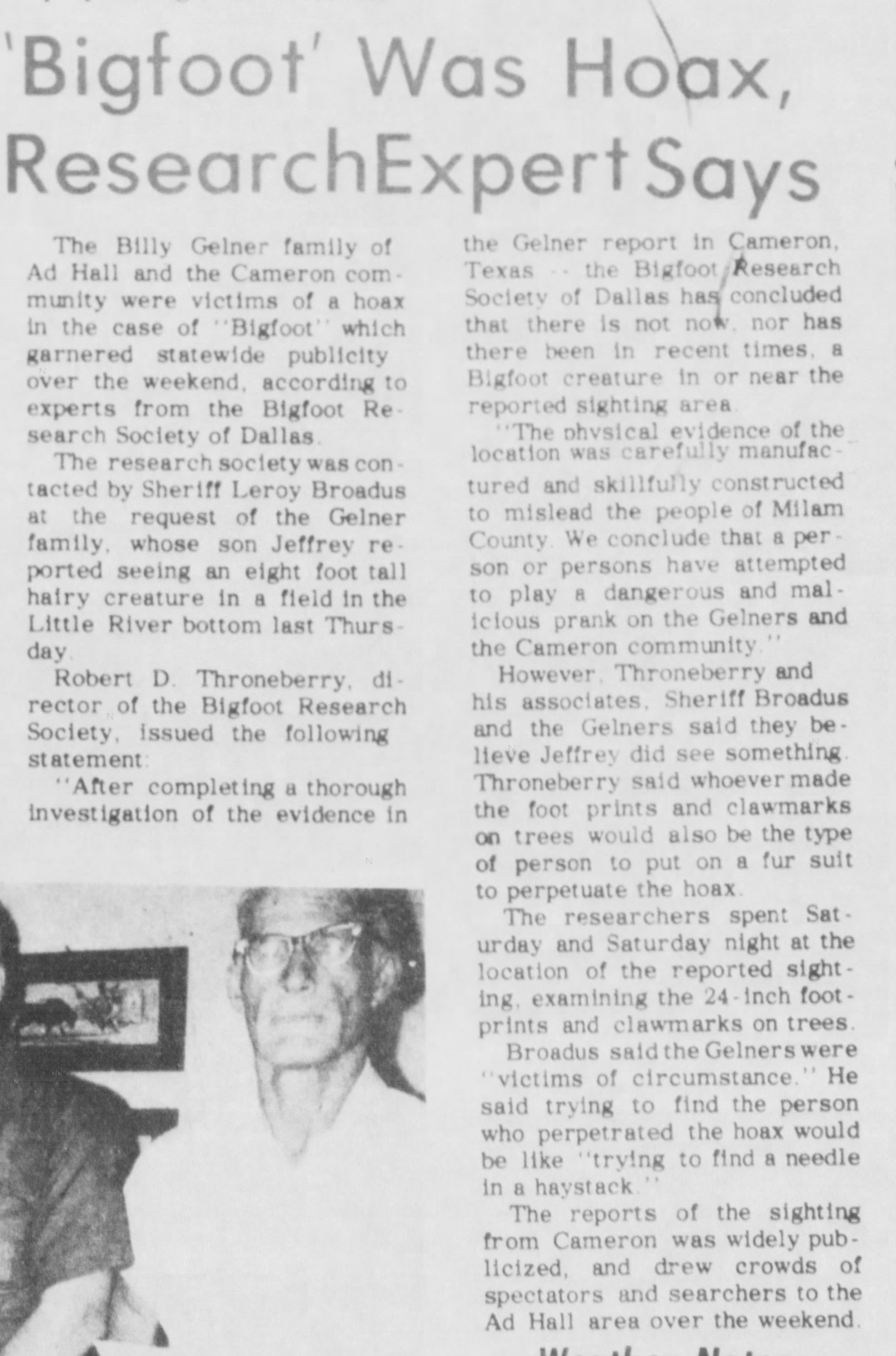 Texas 1978 - Research Group Declares Bigfoot Sighting a Hoax