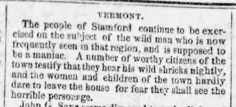 Vermont 1861 - A Wild Man Near Stamford - Tirademan!