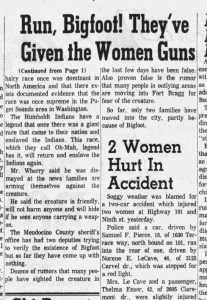 California 1962 - Women Arm Themselves Against Bigfoot
