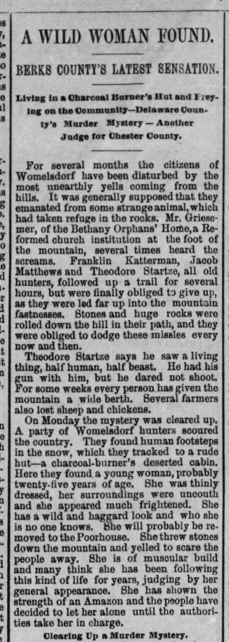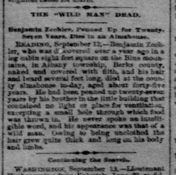 2. I was this close to putting this one in the "clearly human" thread, but ... wearing no clothes caused hair that was "quite thick" over all his body and limbs?! Published in the Pittsburgh (PA) Post-Gazette on September 13, 1882.