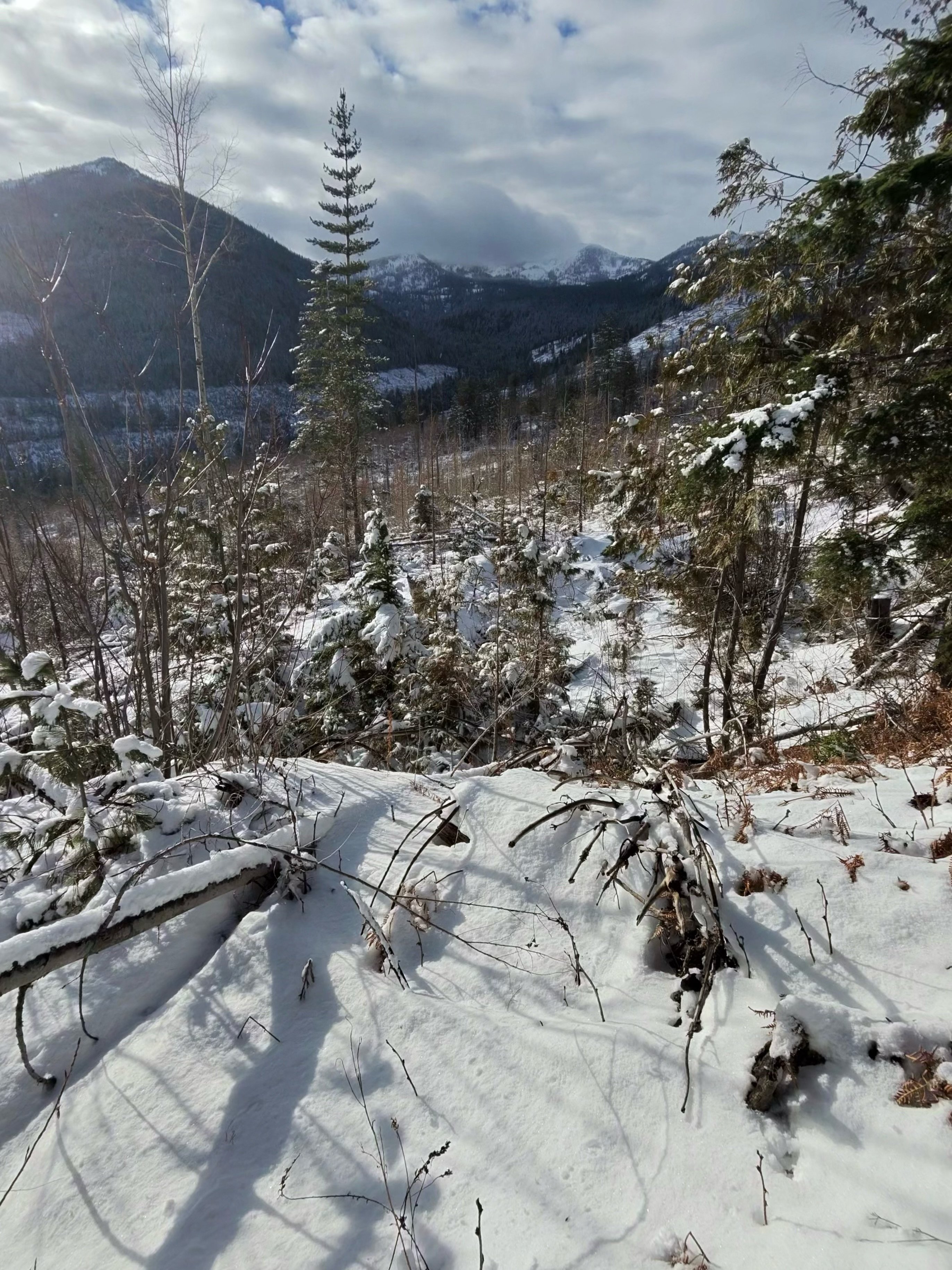 Wolf hunt today in north Idaho. Not much of a winter thus far. We have actually lost snow pack with the Atmospheric River that has flooded much of the PacNW. Saw one Moose today. Saw a-lot of Moose tracks. I went up a dead end road and on the way out discovered I had ran over a kill. Must have been covered in a thin crust of snow. I am guessing its a yearling Moose calf? Maybe a Deer or even a Elk calf. Something had been crunching on the bones and after inspection I found a short black hair on one of the bones. So I kept it and its in the freezer. I am not saying its anything Bigfoot related. But Moose calves, Elk and Deer tend to be a brown color. I thought it was worthy of collecting. If Bigfoot eats ungulates? Surely some evidence will be found on a kill site. If anyone wants the sample? Let me know. In other news I ate it on ice today. The Winchester model 70 hit the ground. Gonna have to check zero. My elbows feel like hamburger. This big thaw has made everything in the mountains a polished sheet of ice. I stepped off the bank after glassing a clear cut and thought the road was snowy. About a 1/4 inch was and underneath was polished glass. Must have looked like a baby Moose on roller skates. Ouch.