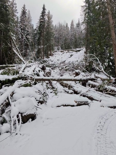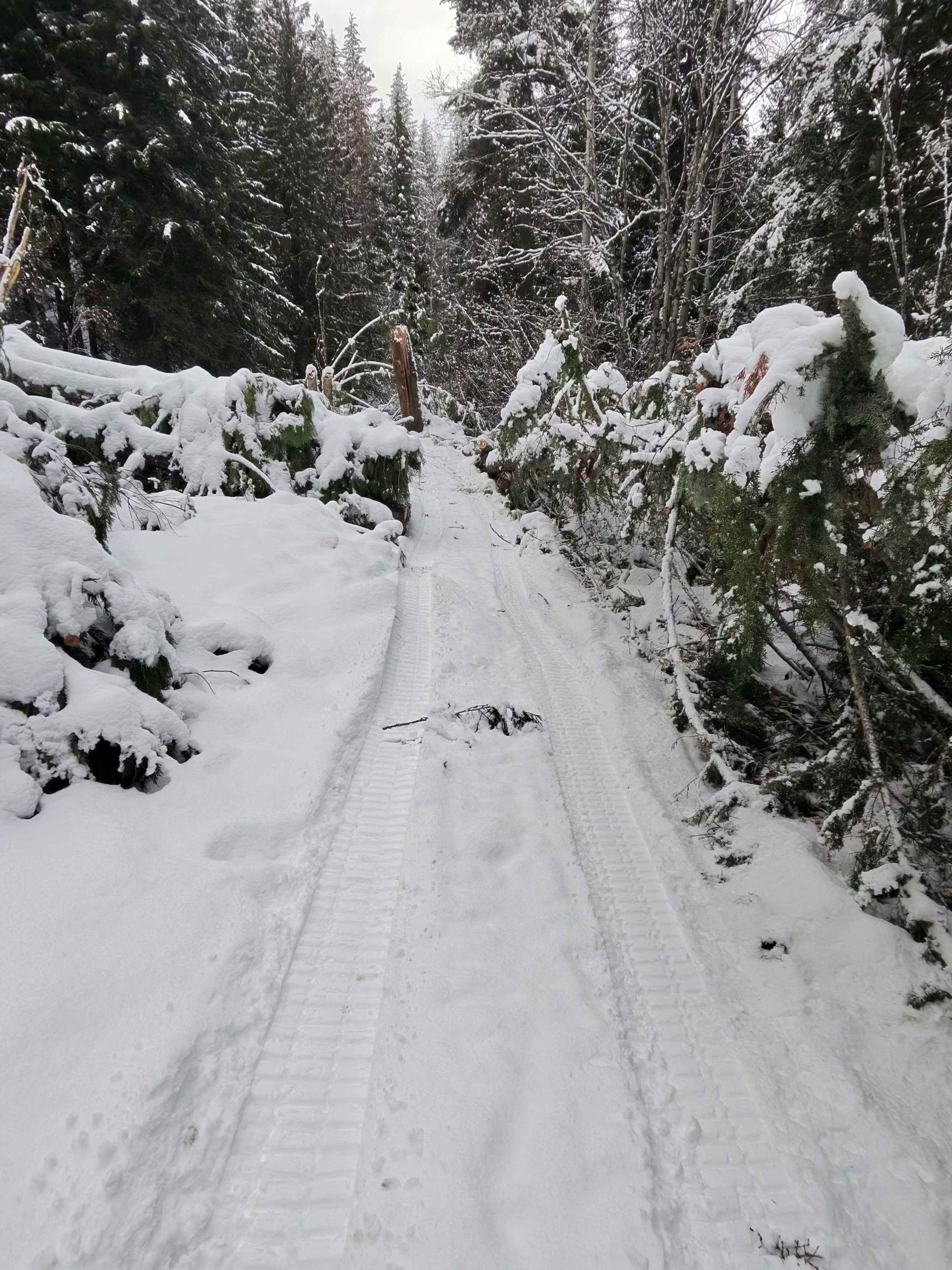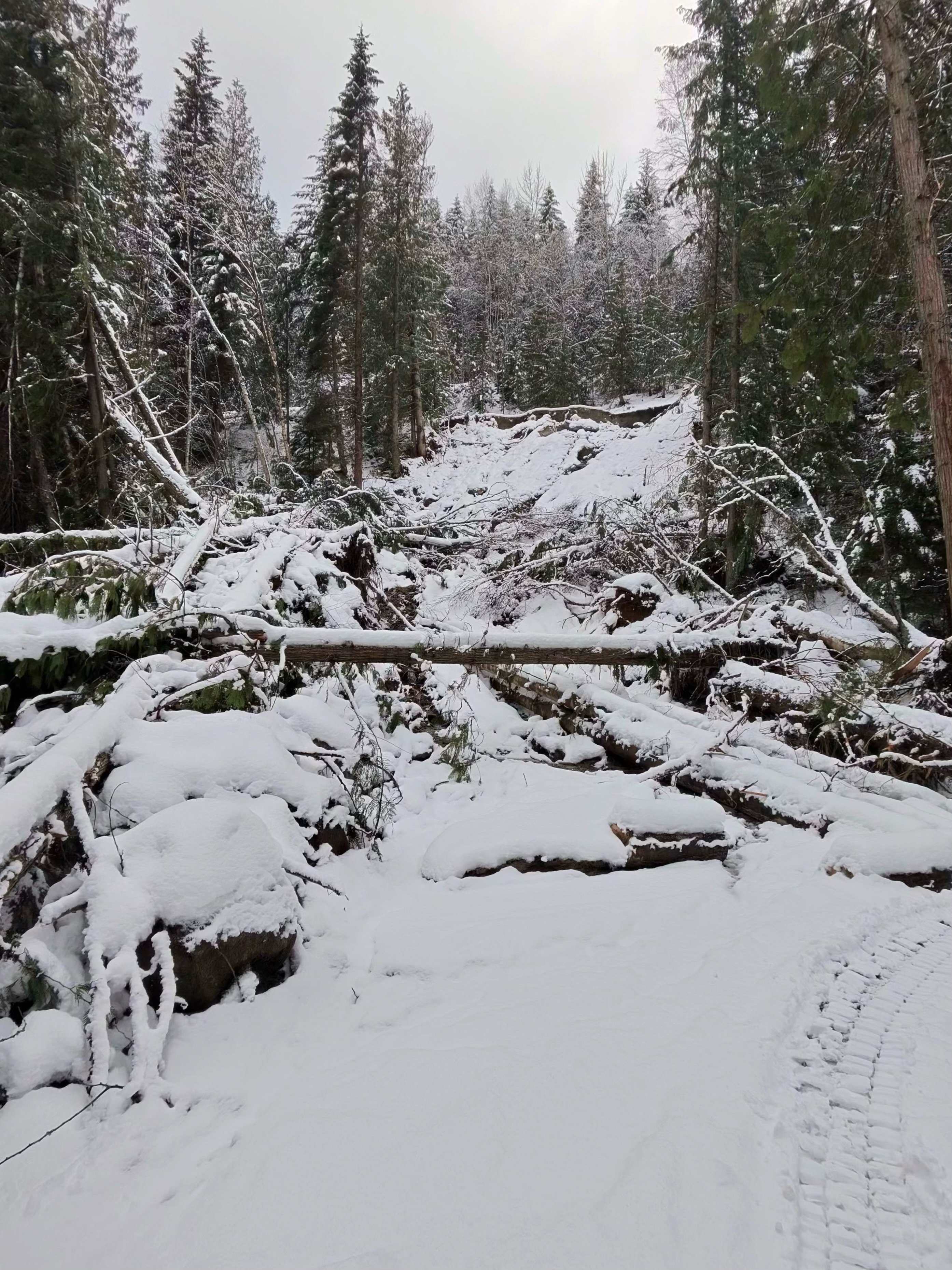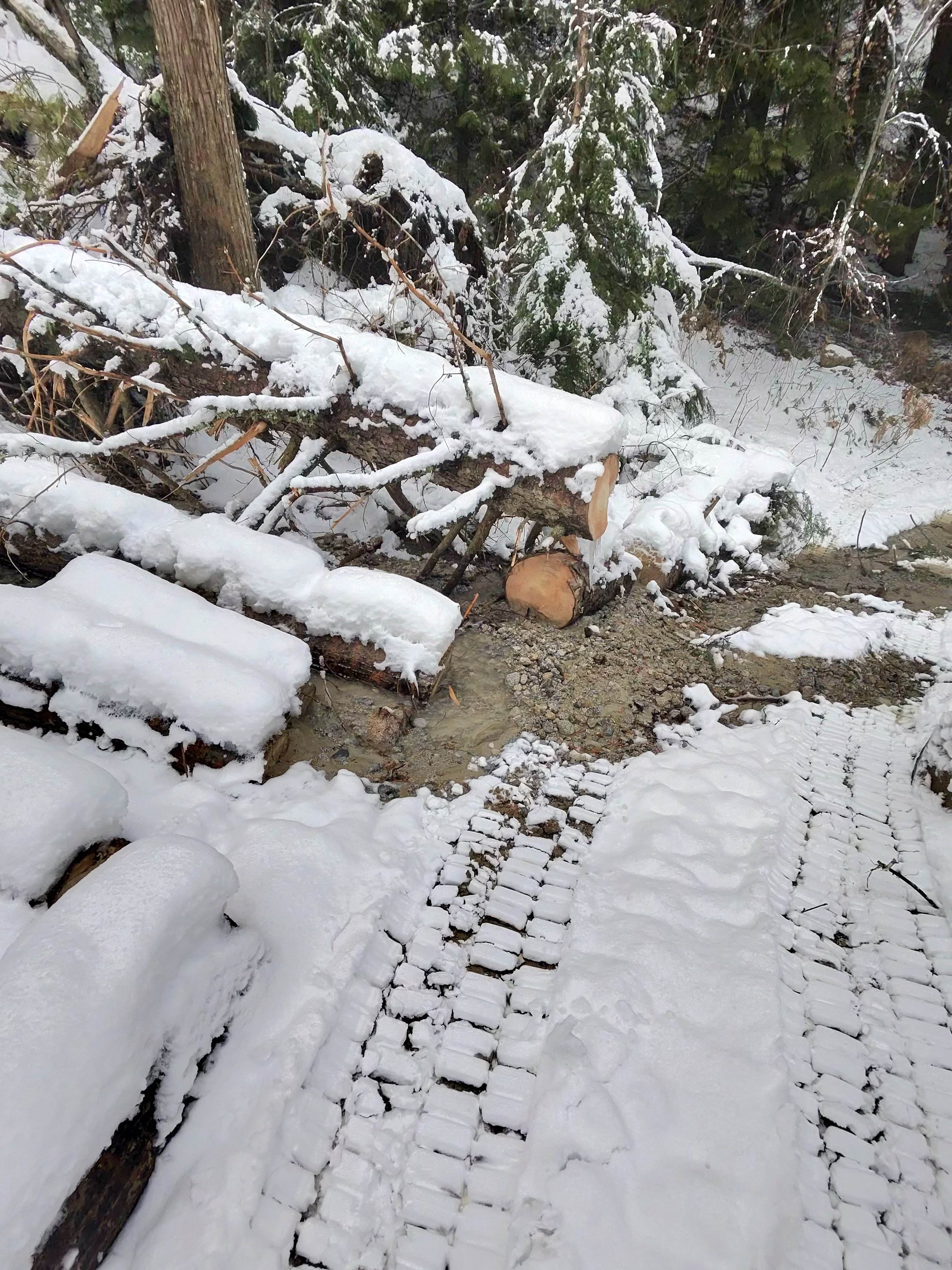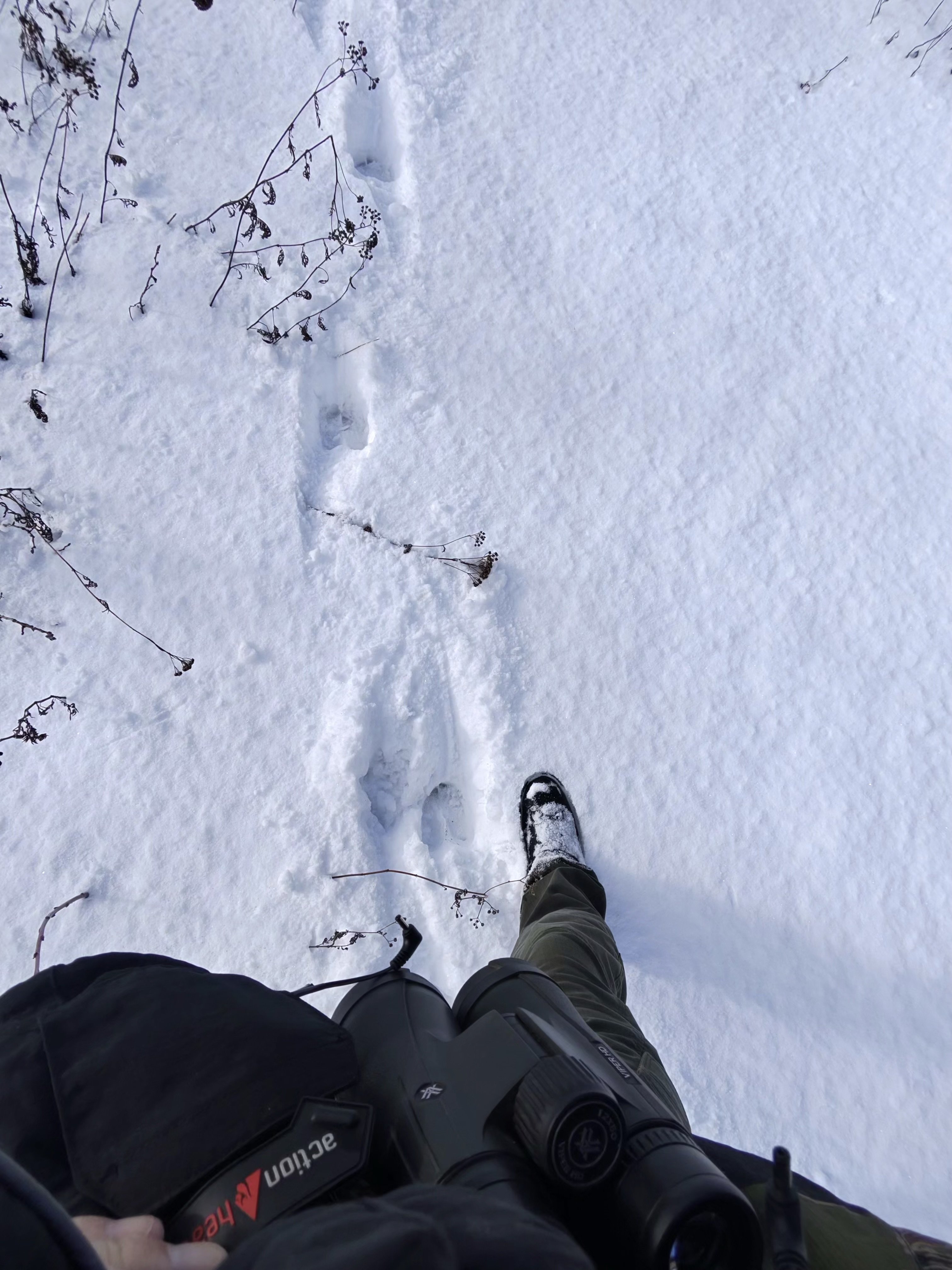 Out again today up the Pack River. Cut deer and moose tracks. Hiked 2 miles into a clear cut. Did a few call sets. Nothing. The clouds rolled in early after noon. Pea soup. On the way out but still on National Forest I come around the corner and what appears to be a Wolf standing on the road. I grab the binos and look at it and it finally turns and it has a harness on.🙄 I never saw the owner. The chick in Montana that shows up to the bar with a skinned Husky was playing in my head.🤣 I got back on the main FS road and continued up river until I hit a mudslide that wiped the road out. A 4 wheeler with tracks had cut a trail out and had made it through. I had to turn around. But it did remind me to stop at the DMV in Idaho and buy my 2026 sticker for my Yamaha Grizzly on tracks. It’s getting to the point that I need to be taking it to reach the good spots. My birthday gift of the Ray Ban smart glasses is working out well. I can just take a picture with a button on the frame instead of digging for my cell phone. And I think the picture quality looks good. What do you guys think?