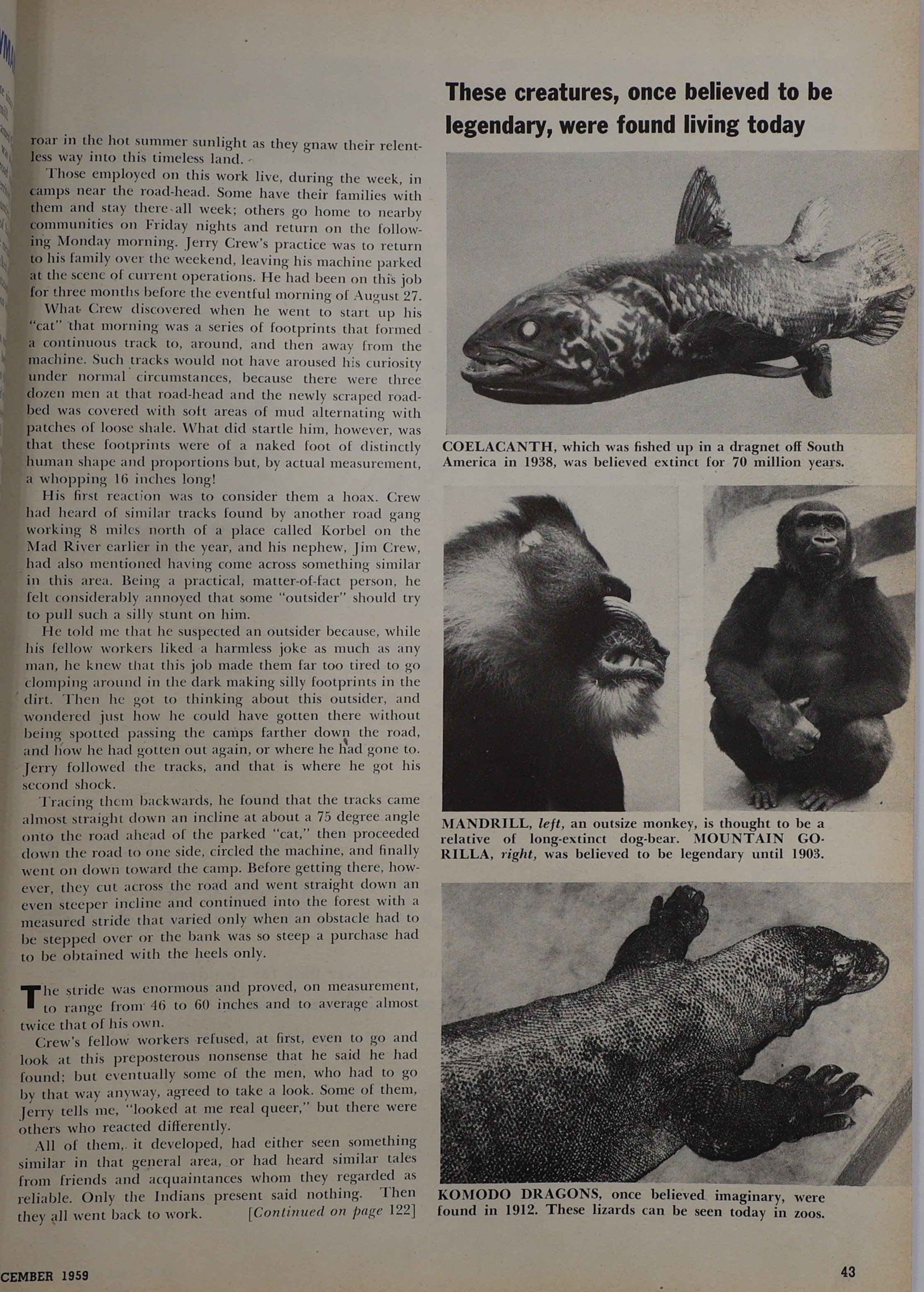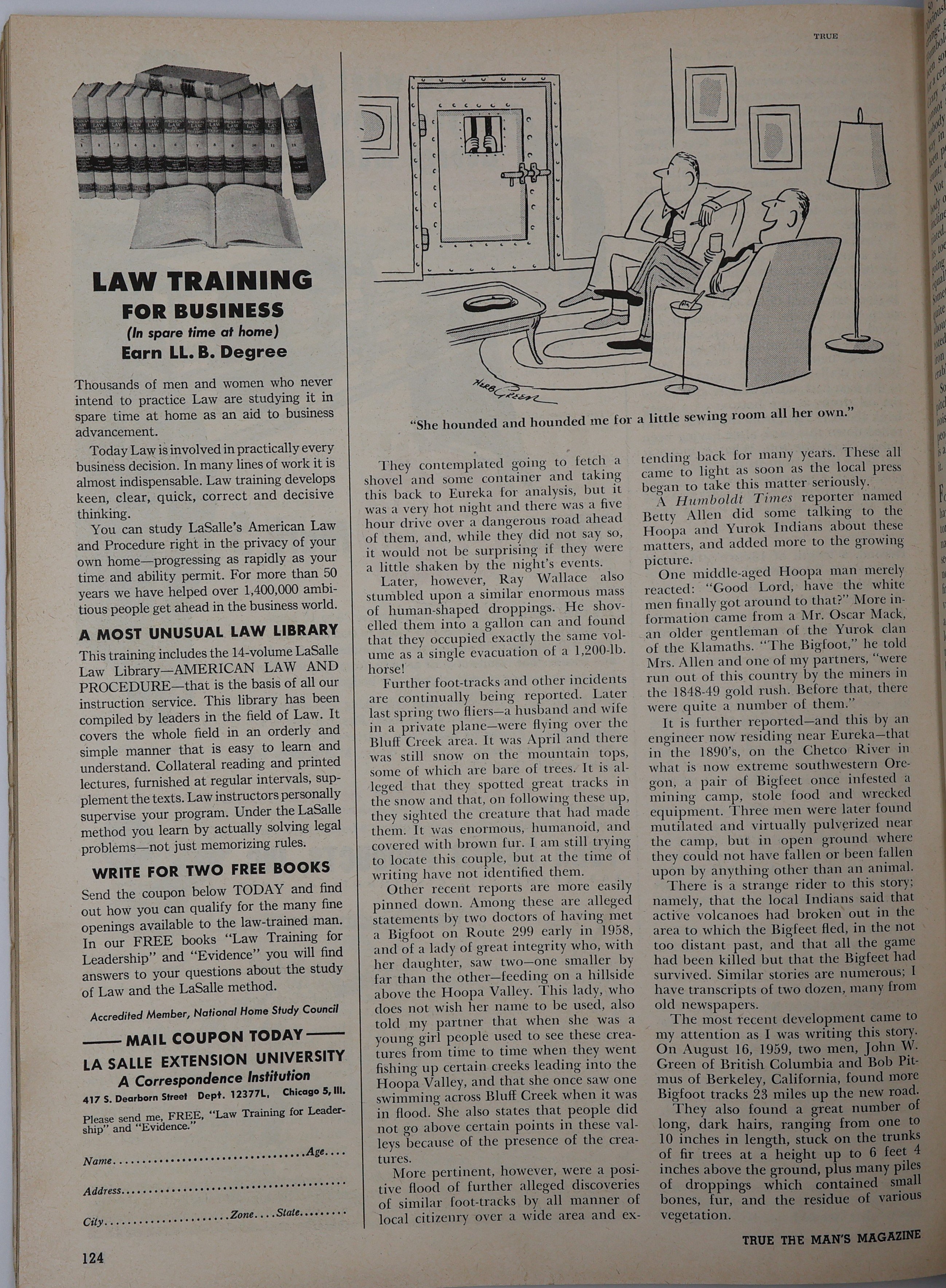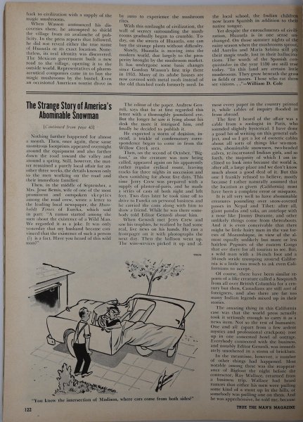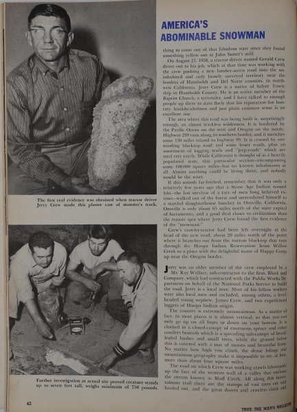 I thought it was the December 1960 edition, but it was in one of the True magazine articles that ITS wrote. Right now I believe that they're all probably on the Bigfoot Encounters website, but they have text only for most articles. -