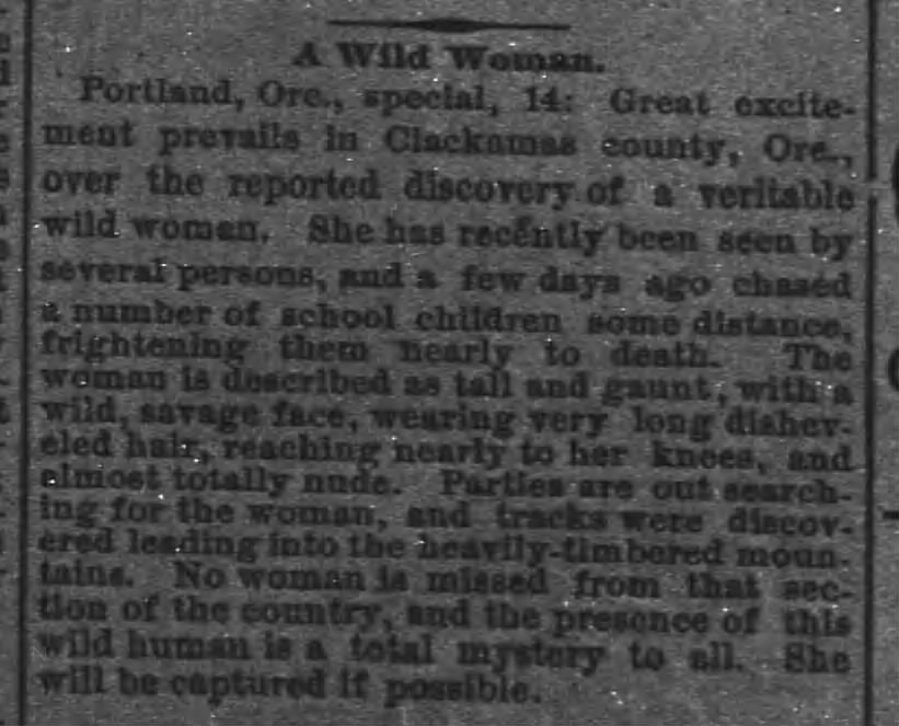 Michigan 1902 as reported in The Yakima Herald on February 18, 1902. Sadly, this sounds like a human with mental health issues who probably died in the woods. -