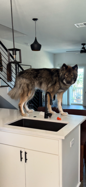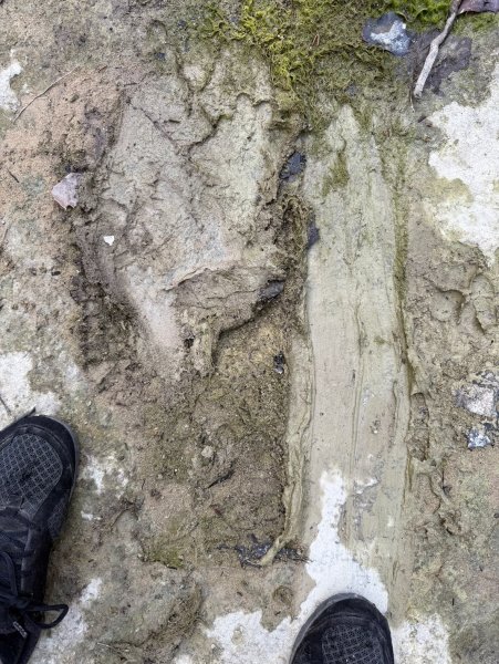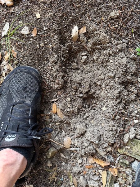 More rain Monday and soft soil, it's usually baked solid starting in July, but not this year it's crazy, more prints from yesterday and more than one source, and a cool mud slid......Rambo is learning to track the Hairyman the same as last wolfy Lulu did:) Yeah, he can jump on the kitchen counter flat footed without making a sound, bad boy LMAO!