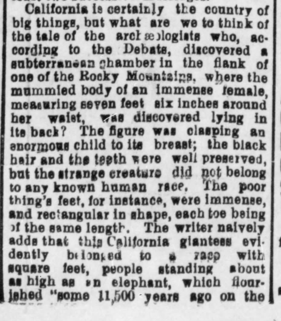 Also published in Bigfoot in New York and New England by Paul and Robert Bartholomew; this time they point out that some witnesses described a human. This article (the only one I could find) is from the Buffalo (NY) Courier on July 28, 1869. -