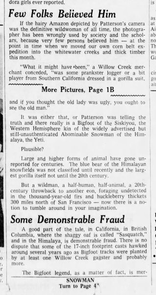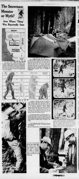 Published in the Red Bluff (CA) Tehama County Daily News on April 08, 1968. Always interesting to compare early takes on Bigfoot with the current views. -