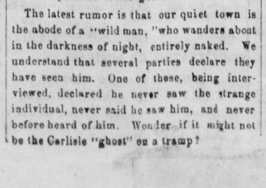 Pennsylvania 1872 - Wild Man Seen Near York