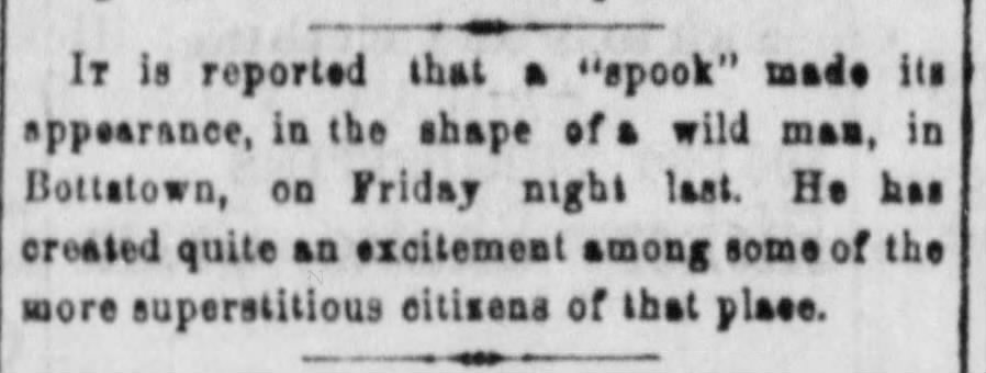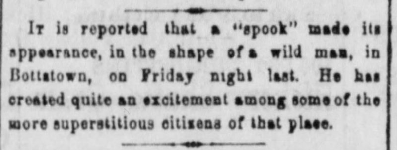 The York (PA) Daily on November 4 and December 10, 1872. Bottstown was, after repeated attempts, annexed into York in 1884. Both stories recounted in Bigfoot in Pennsylvania by Timothy Renner. - Today