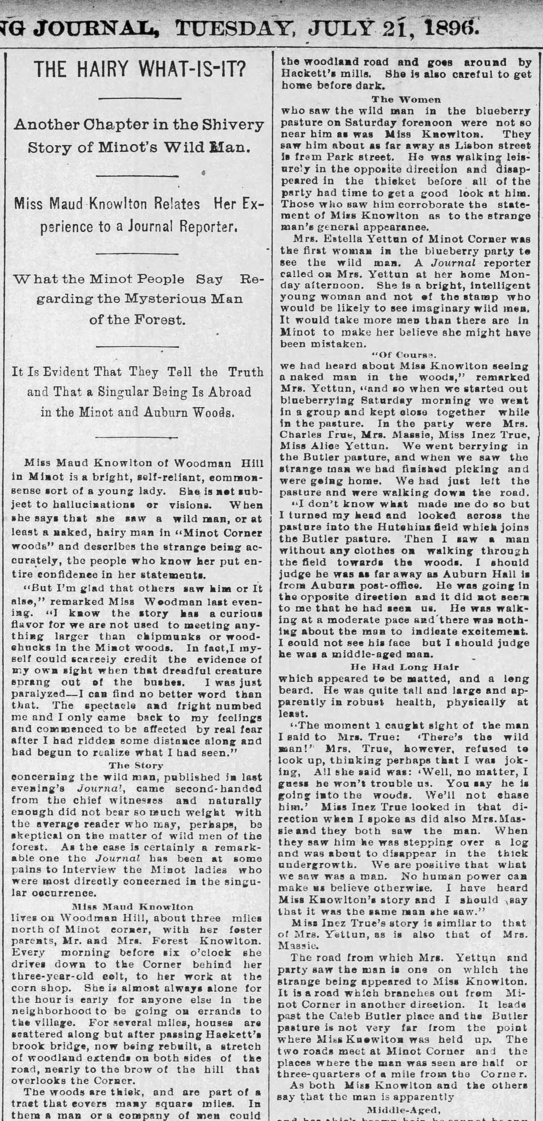 Trogluddite Posted August 1, 2025 Posted August 1, 2025 (edited) From the Washington (D.C.) Post on July 26, 1896. UPDATE Jan 2026: While searching for a different story, I found what appears to be an original report from a local Maine newspaper. I've bumped the prior report down in favor of this article published in the Sun-Journal of Lewiston, Maine, on July 21, 1896. Edited Saturday at 03:00 PM by Trogluddite To add date. To add a new article.