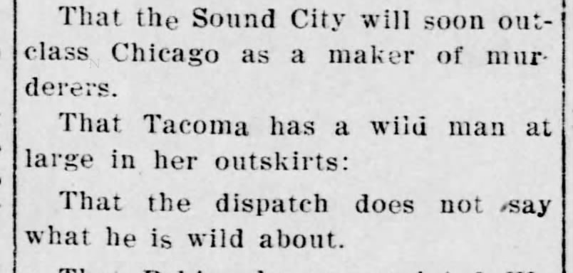 Trogluddite Posted 2 hours ago Posted 2 hours ago (edited) These three clippings demonstrate how old newspaper clippings can be taken out of context by incautious researchers. They are from The Wenatchee (WA) Daily World on September 26 and 28, 1907, respectively. An unscrupulous or credulous researcher might present these as evidence that a Bigfoot was captured near Tacoma in 1907. However, the third article, from the Tacoma (WA) News Tribune on September 26, 1907, presents an entirely different perspective. Edited December 28, 2025 by Trogluddite